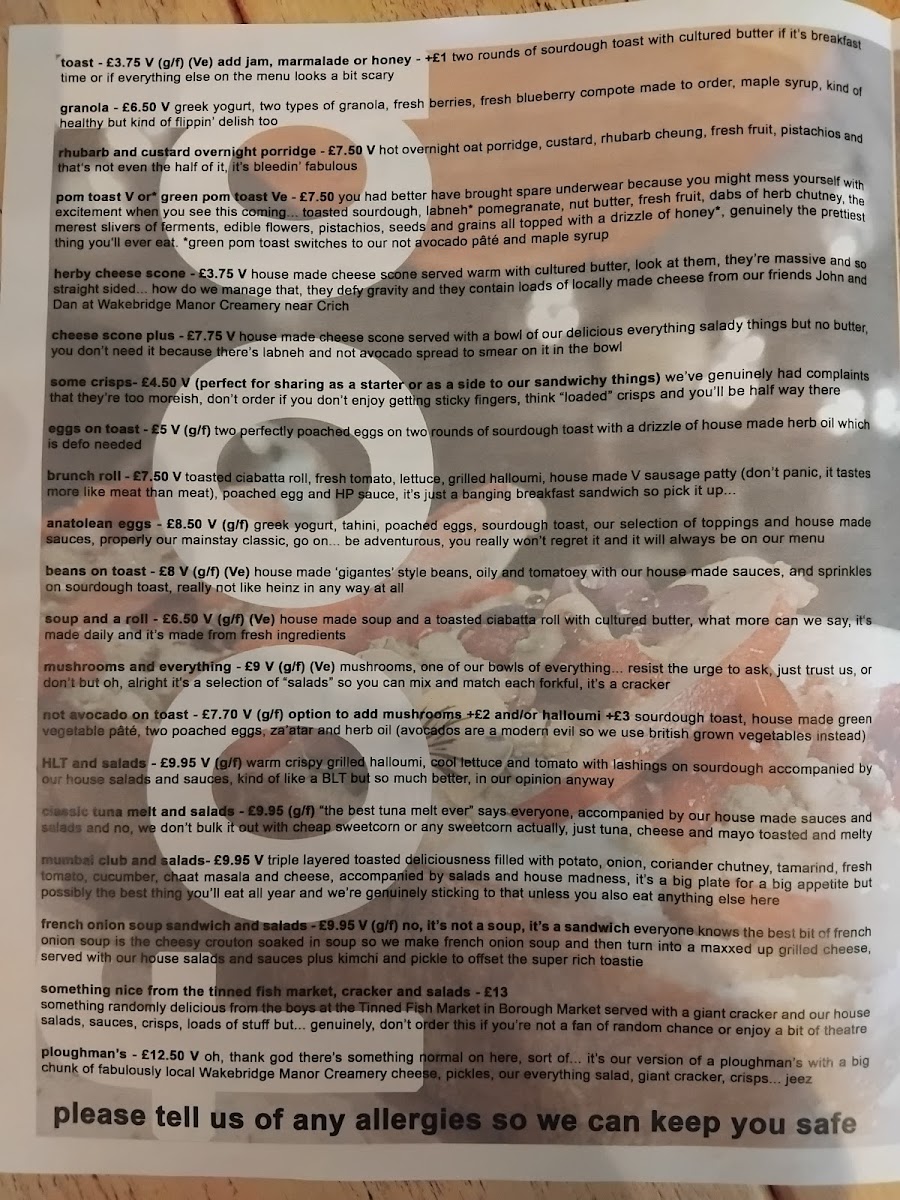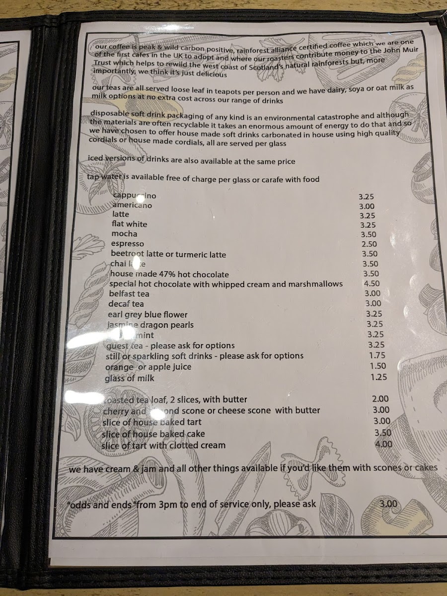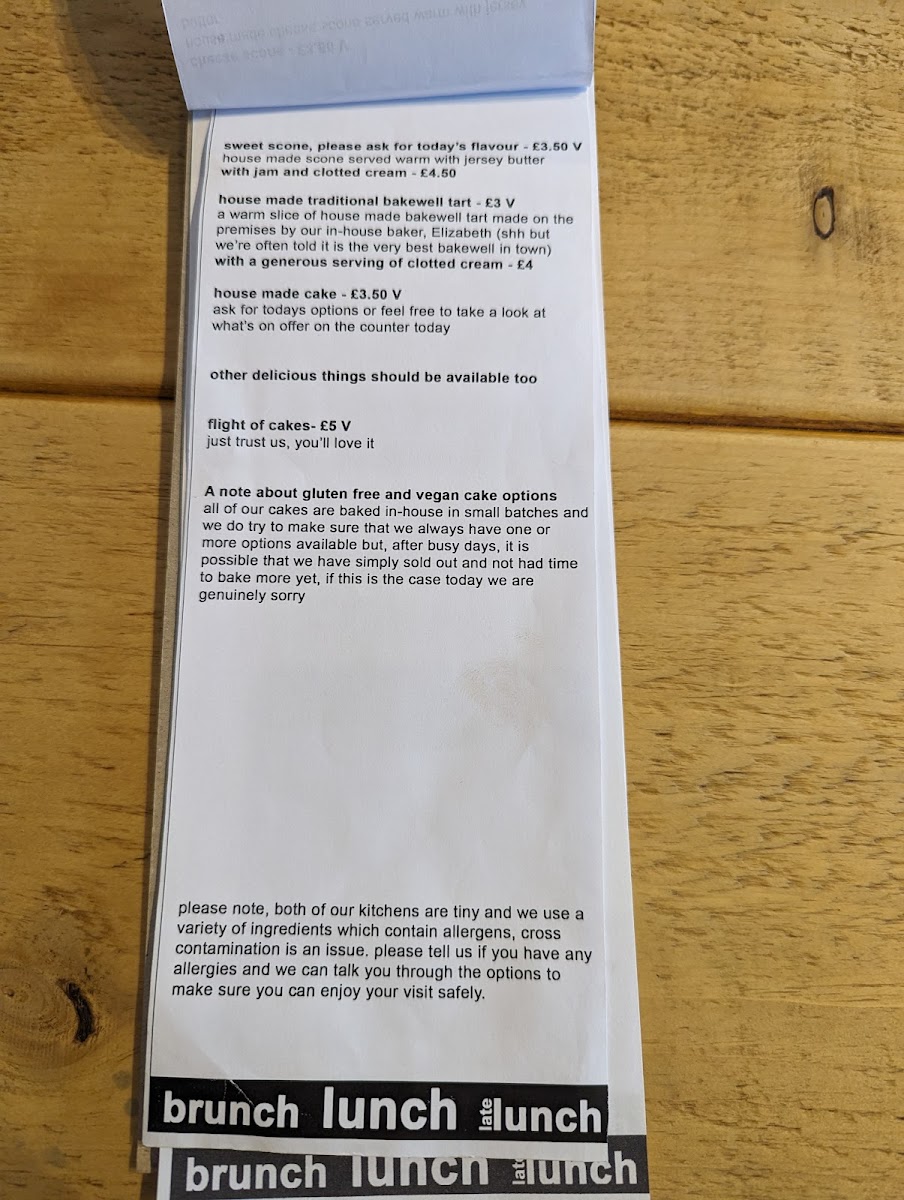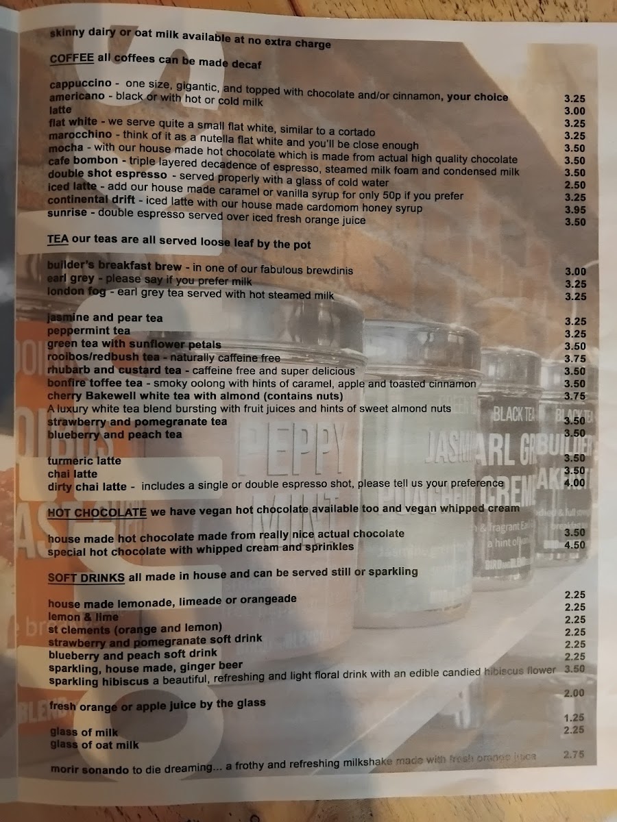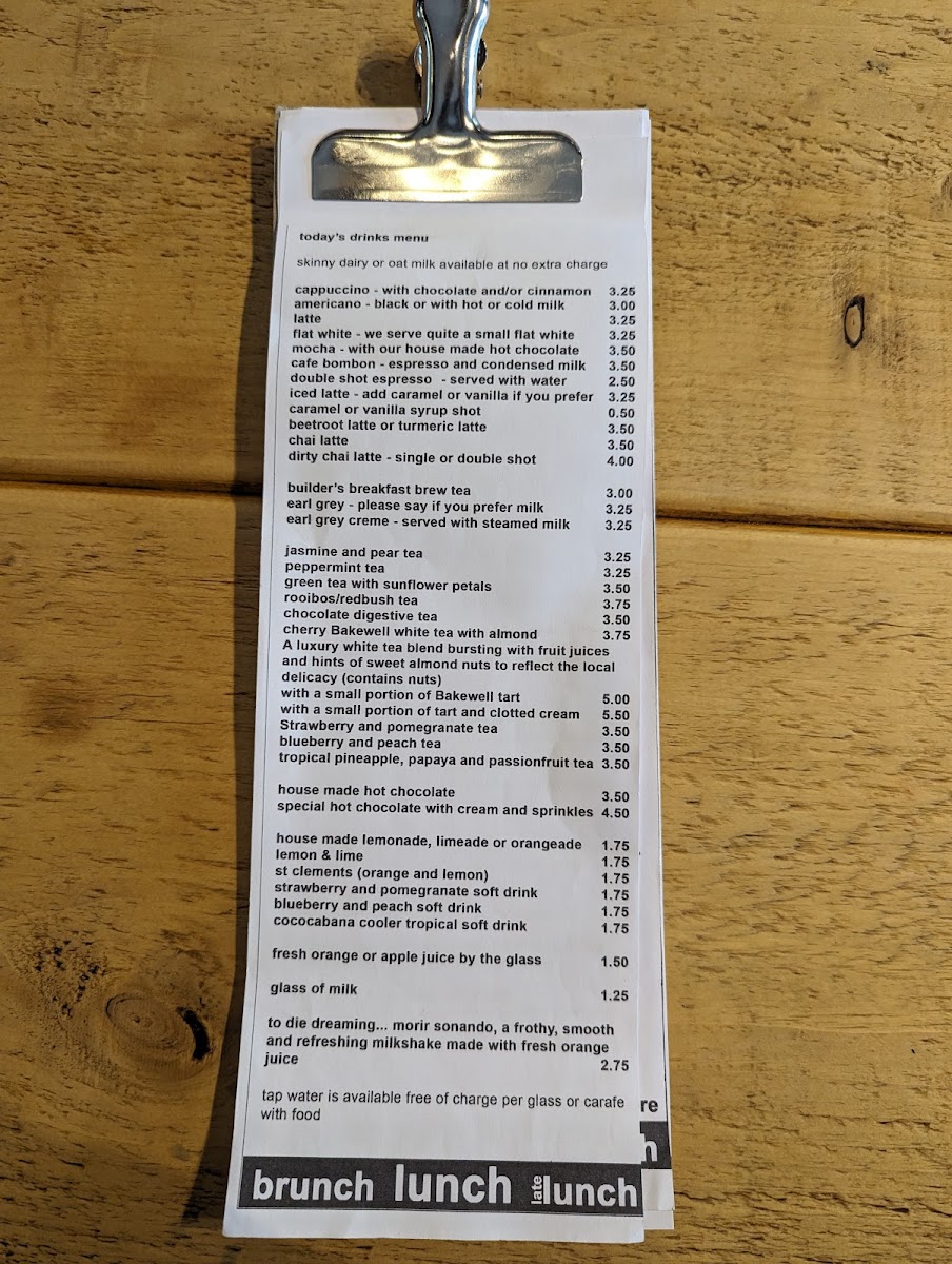- Food Items: Light meal offerings include sandwiches such as the Club Sandwich and Tuna Melt, along with the option of a traditional Bakewell Tart and scones, which are suitable for a quick or casual dining experience.